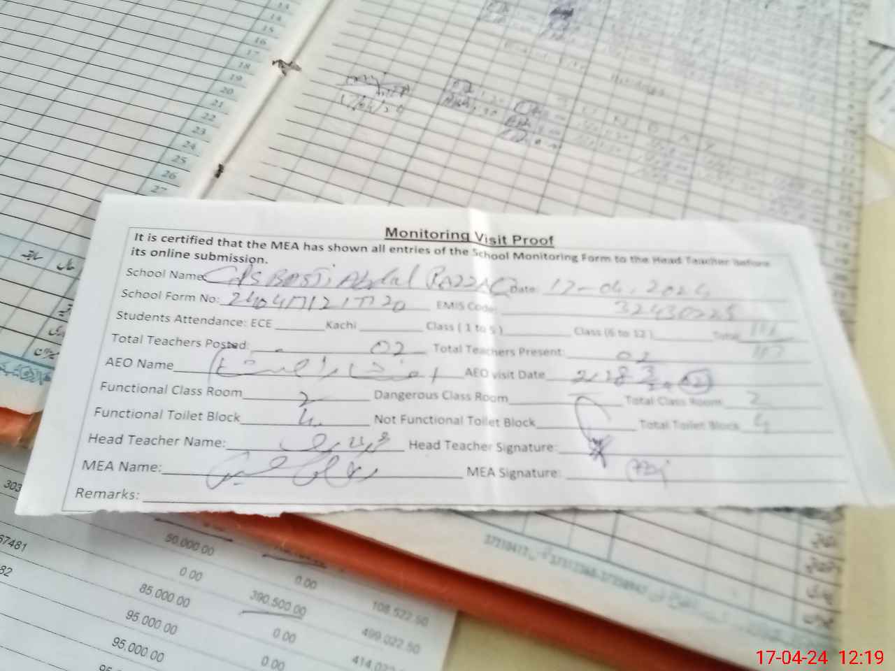| EMIS Code: 32430225 | Name of School: GPS BASTI WADERA ABDUL RAZZAQ DULLANI | |||