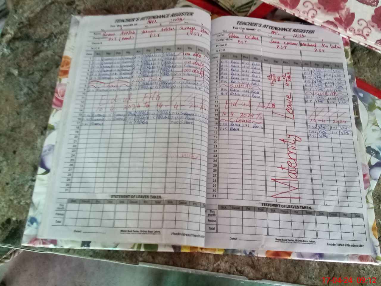 | Leave | Duty | Absent | Maternity | Medical | Ex- Pak |