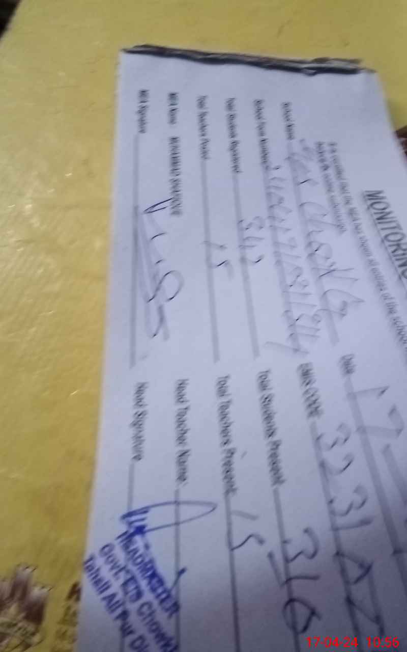 | Monitoring Date: 17-04-2024 | Start Time: 17-04-2024 10:08 AM | End Time: 17-04-2024 11:01 AM | Name of MEA: MU**** SH**** | |