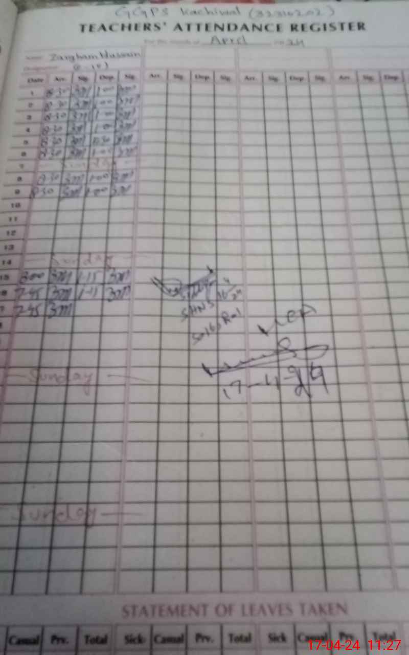 Leave Type | Remarks for Today (Leave,Training, Exam,Absent,Late, Other Duty) |