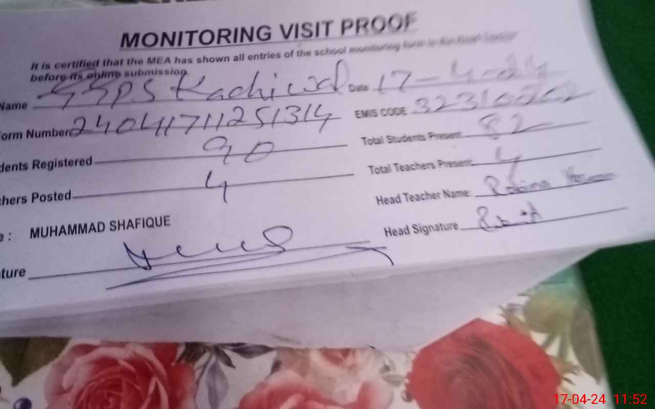 | EMIS Code: 32310202 | Name of School: GGPS KACHI WALI | |||