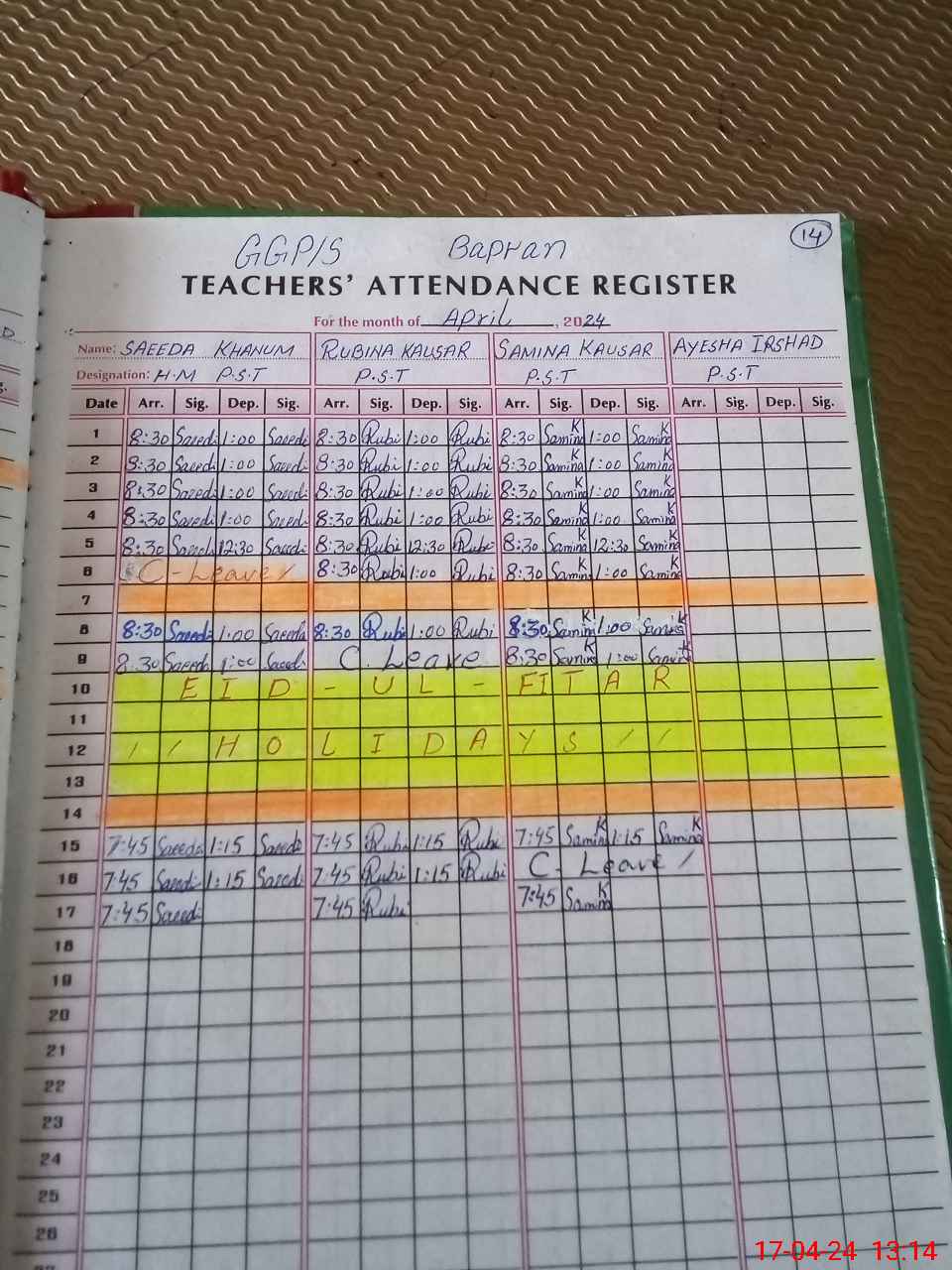 | 31**** | Ay**** Ir**** | PST | Regular | 0 | 0 | 31 | 0 | 0 | 0 | 0 | 0 | 0 | Absent (Un-Authorized) |