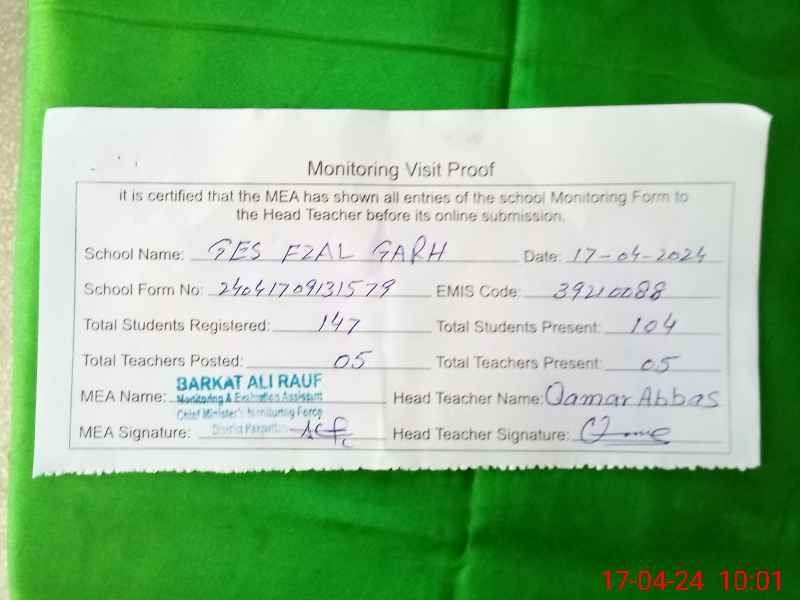 | EMIS Code: 39210088 | Name of School: GES FAZAL GARH P.O BOYLE GANJ | |||