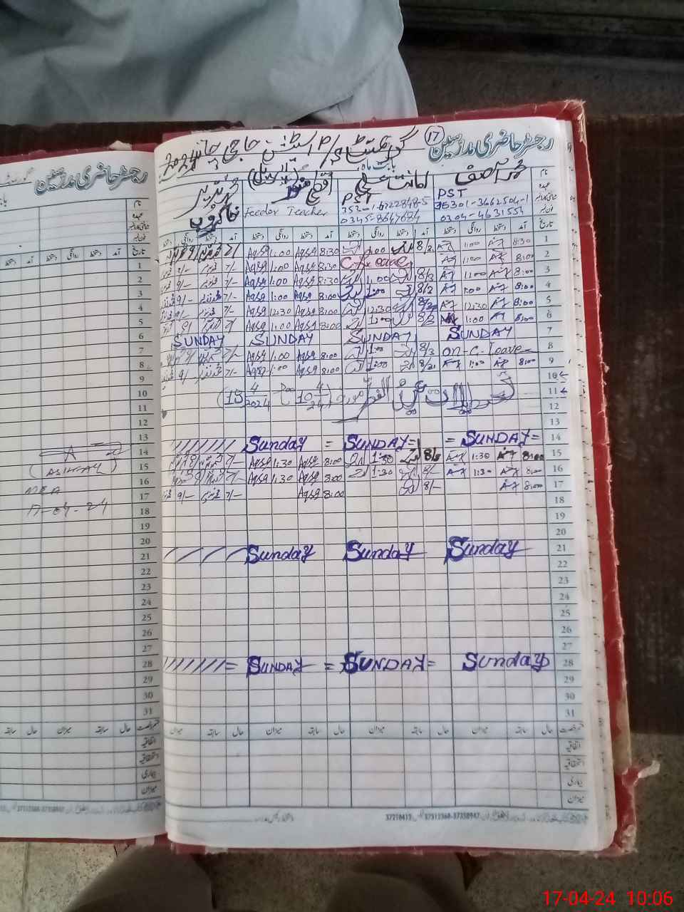 | Name: HA**** MYA**** Designation: (School Headmaster's/Headmistress's) PST Phone/Cell Number: 03**** |