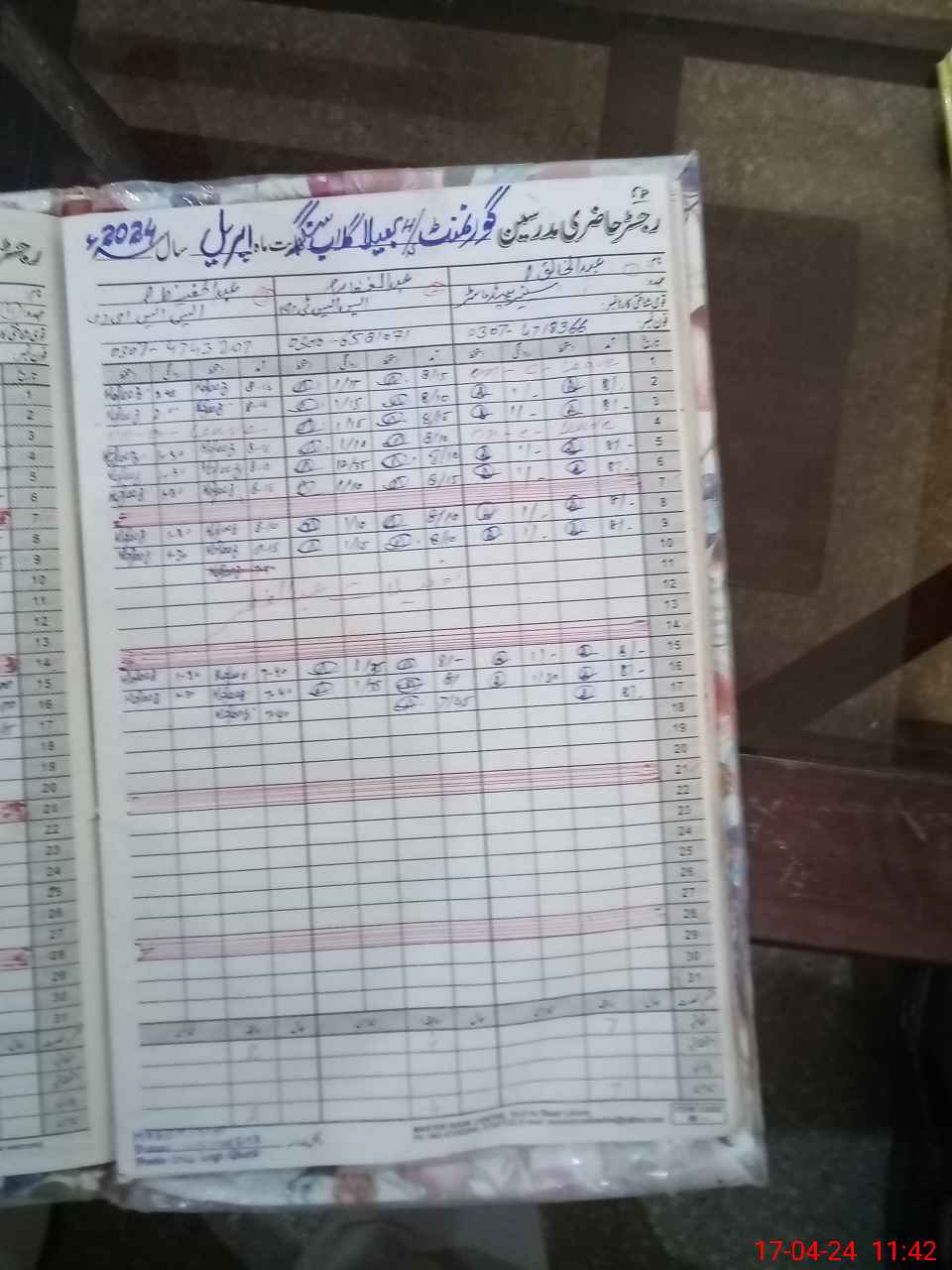 | CNIC | Full Name | Designation | R/C | Absence During Last Calender Month |