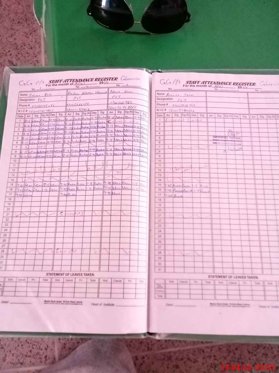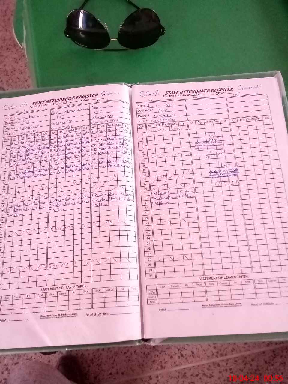 | CNIC | Full Name | Designation | R/C | Absence During Last Calender Month |