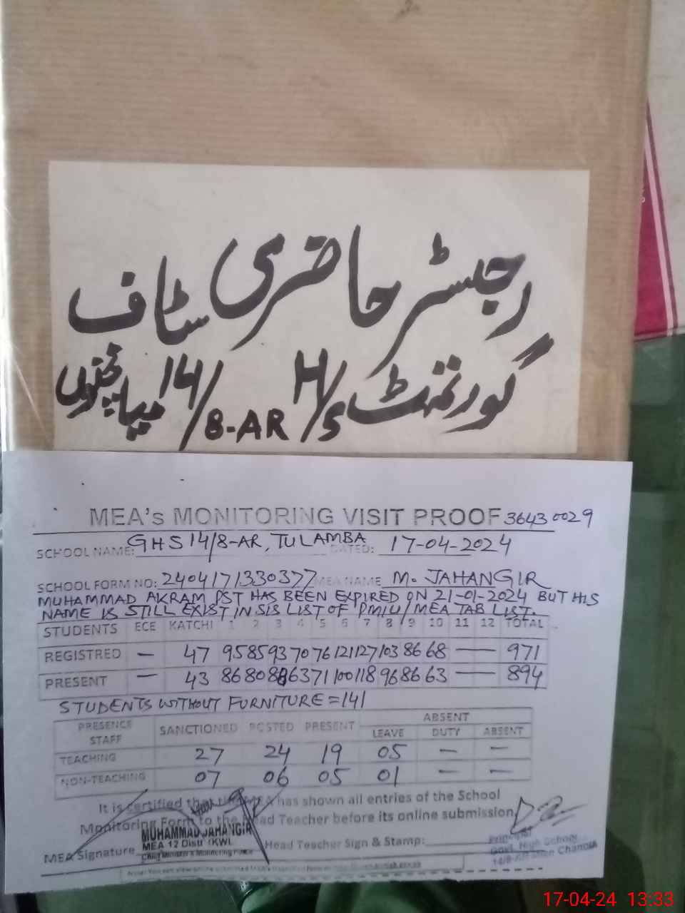 | EMIS Code: 36430029 | Name of School: GHS 14/8-AR, TULAMBA | |||