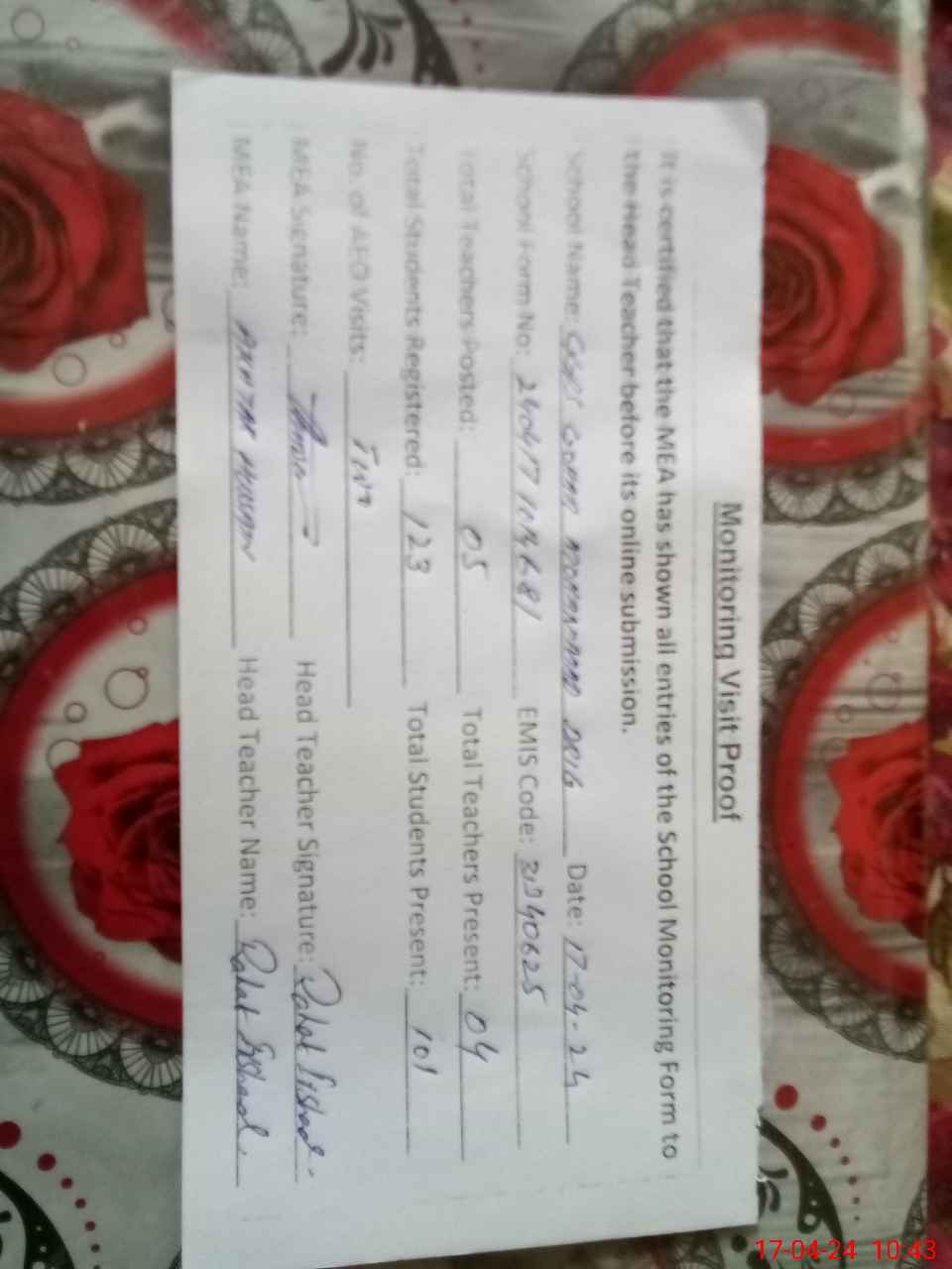 | EMIS Code: 31340625 | Name of School: GGPS GOHAR MUHAMMAD DRGH | |||