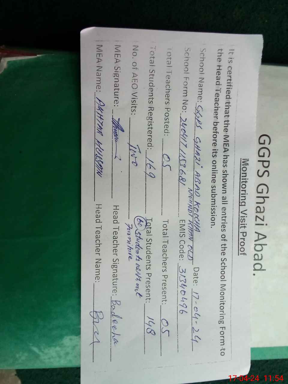 | EMIS Code: 31340496 | Name of School: GGPS GHAZI ABAD KOOCHA MEHNDI KHAN OLD | |||