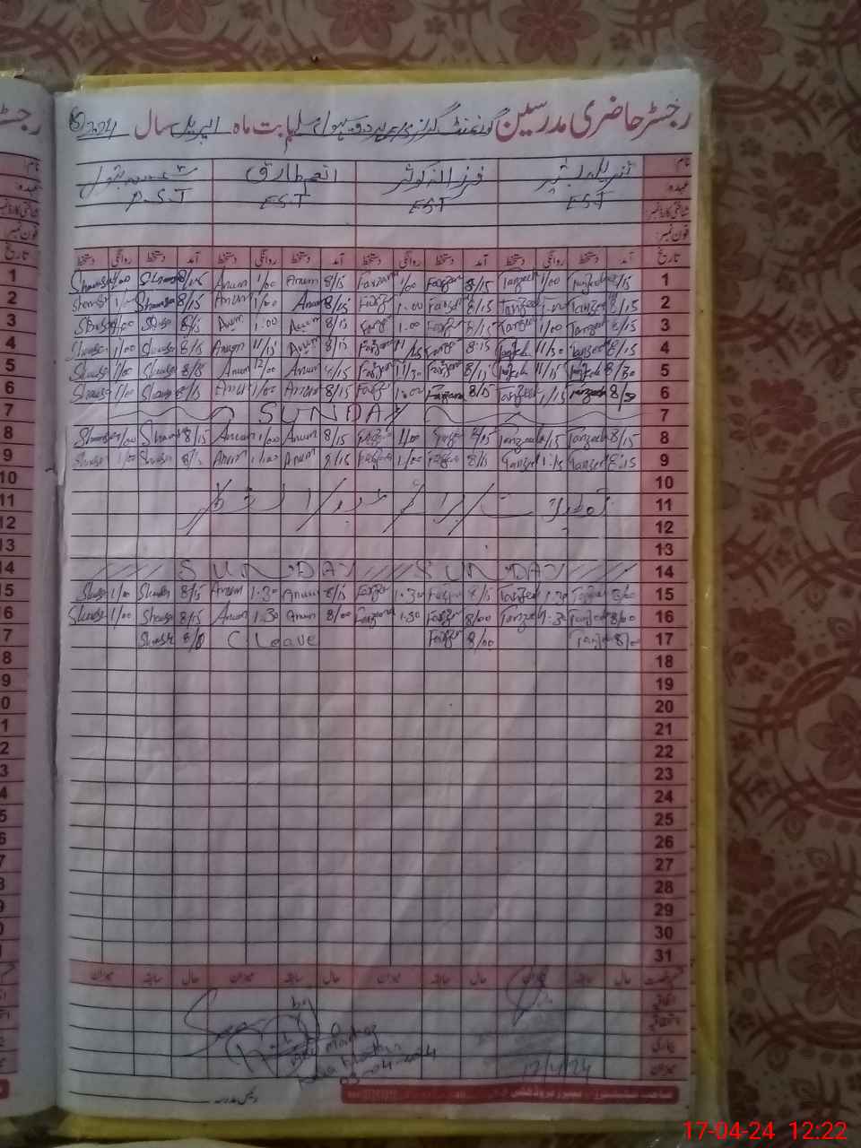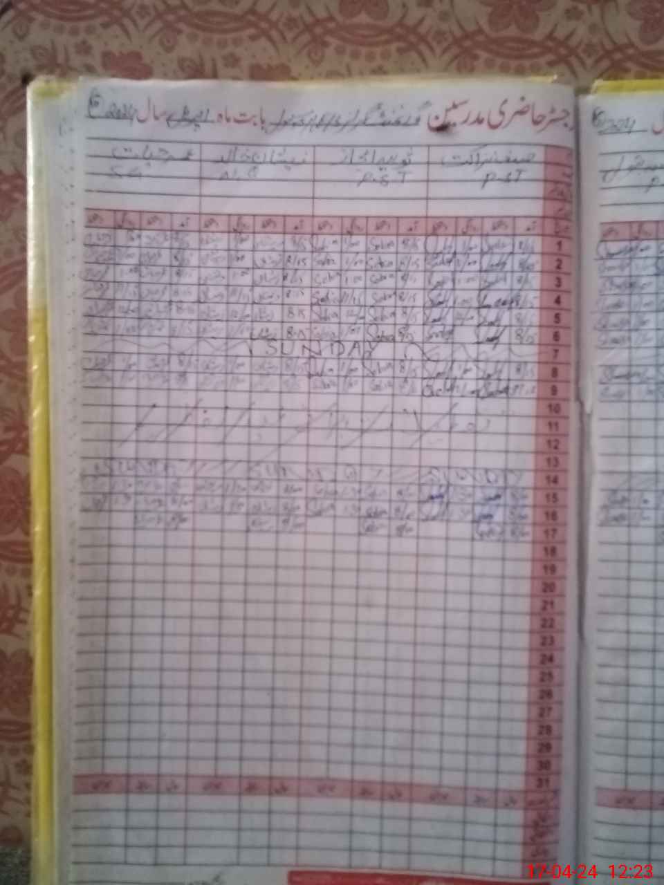 | CNIC | Full Name | Designation | R/C | Absence During Last Calender Month |