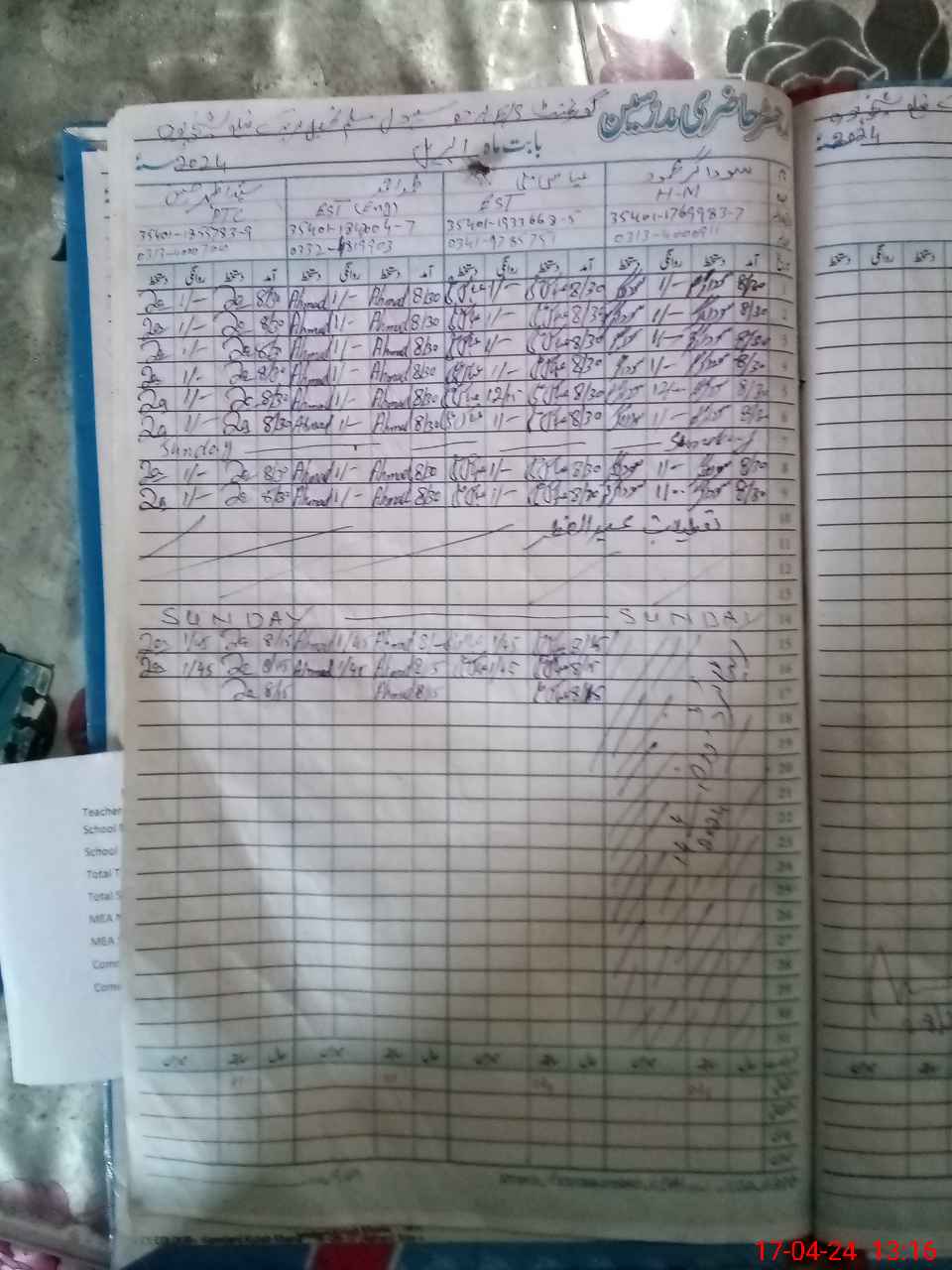 | Name: AB**** AL**** Designation: (School Headmaster's/Headmistress's) EST Phone/Cell Number: 03**** |