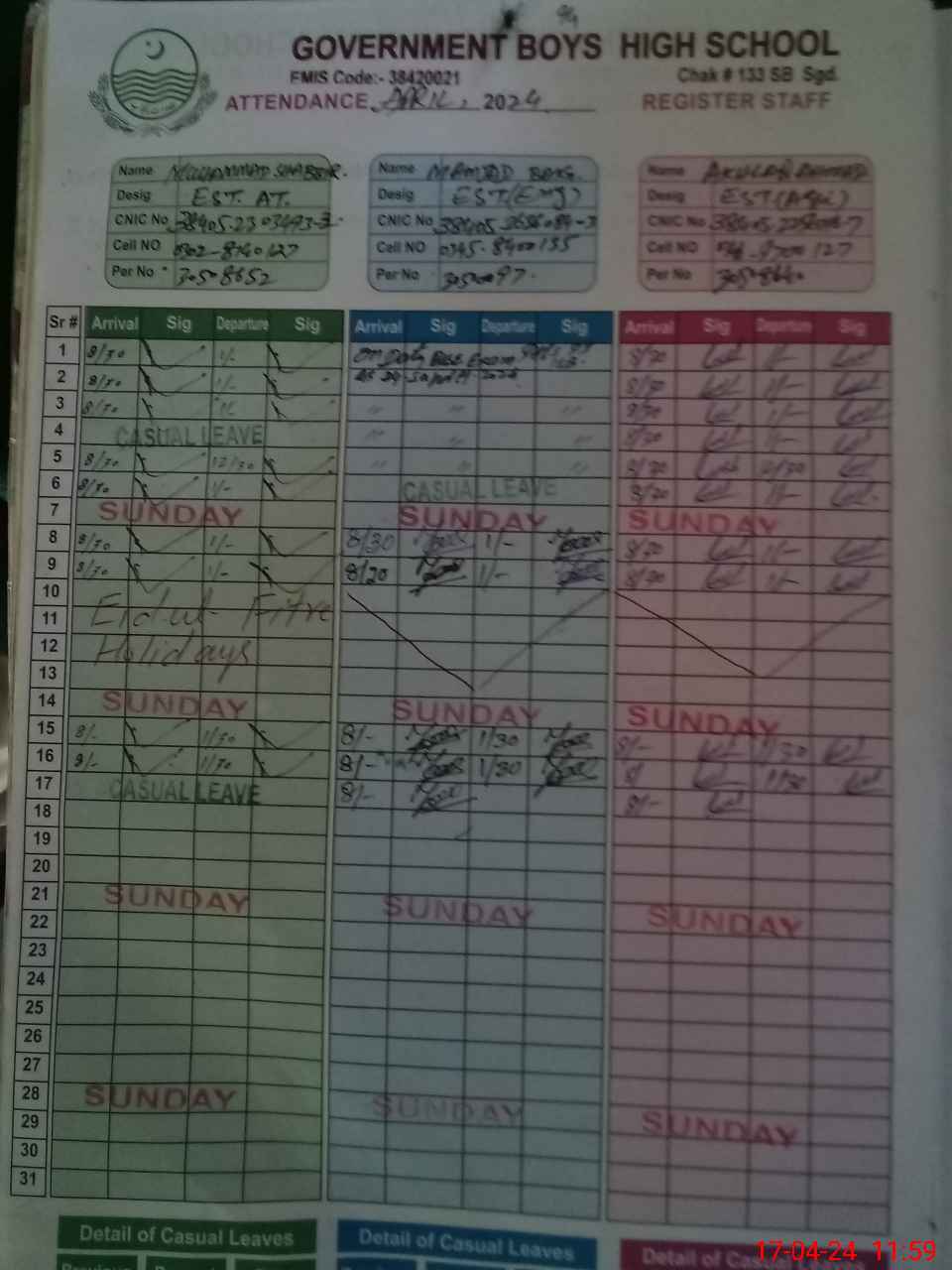 | 38**** | Sa**** | CHOWKEDAR | Regular | 0 | 0 | 0 | 0 | 0 | 0 | 0 | 0 | 0 | Casual |
