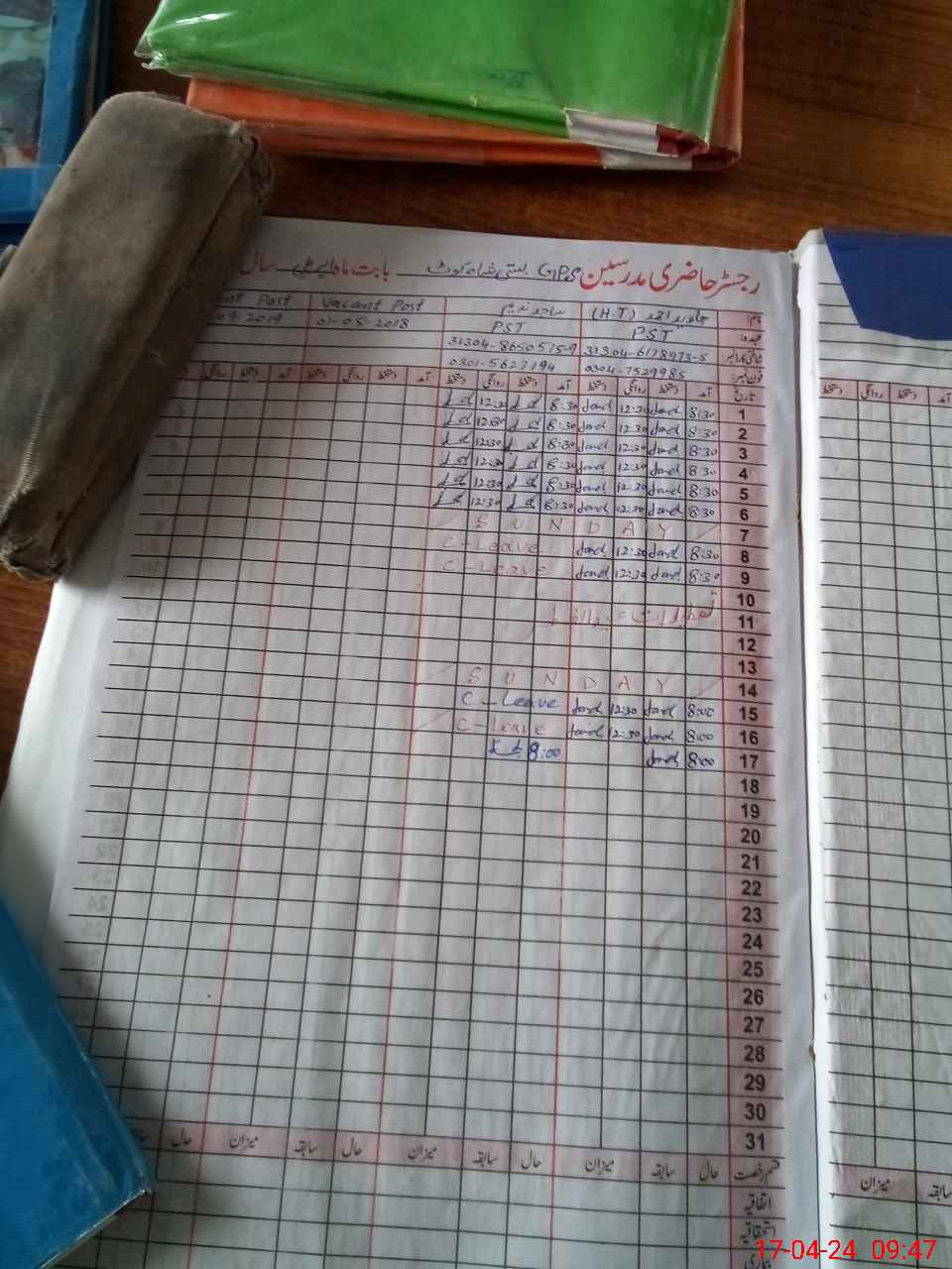 | CNIC | Full Name | Designation | R/C | Absence During Last Calender Month |