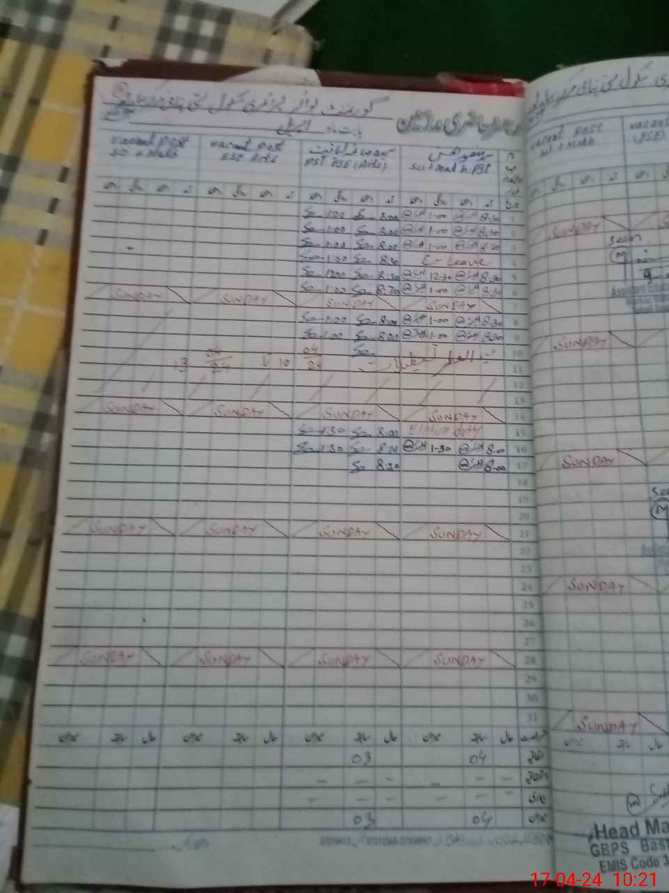 | Name: Ma**** Ul**** Designation: (School Headmaster's/Headmistress's) PST Phone/Cell Number: 03**** |