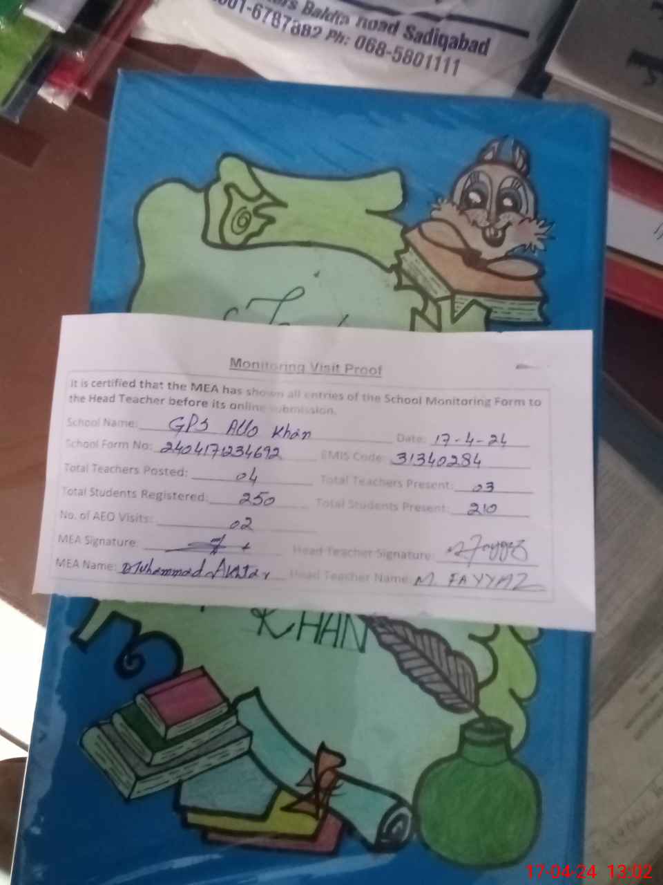 | EMIS Code: 31340284 | Name of School: GPS ALLO KHAN | |||