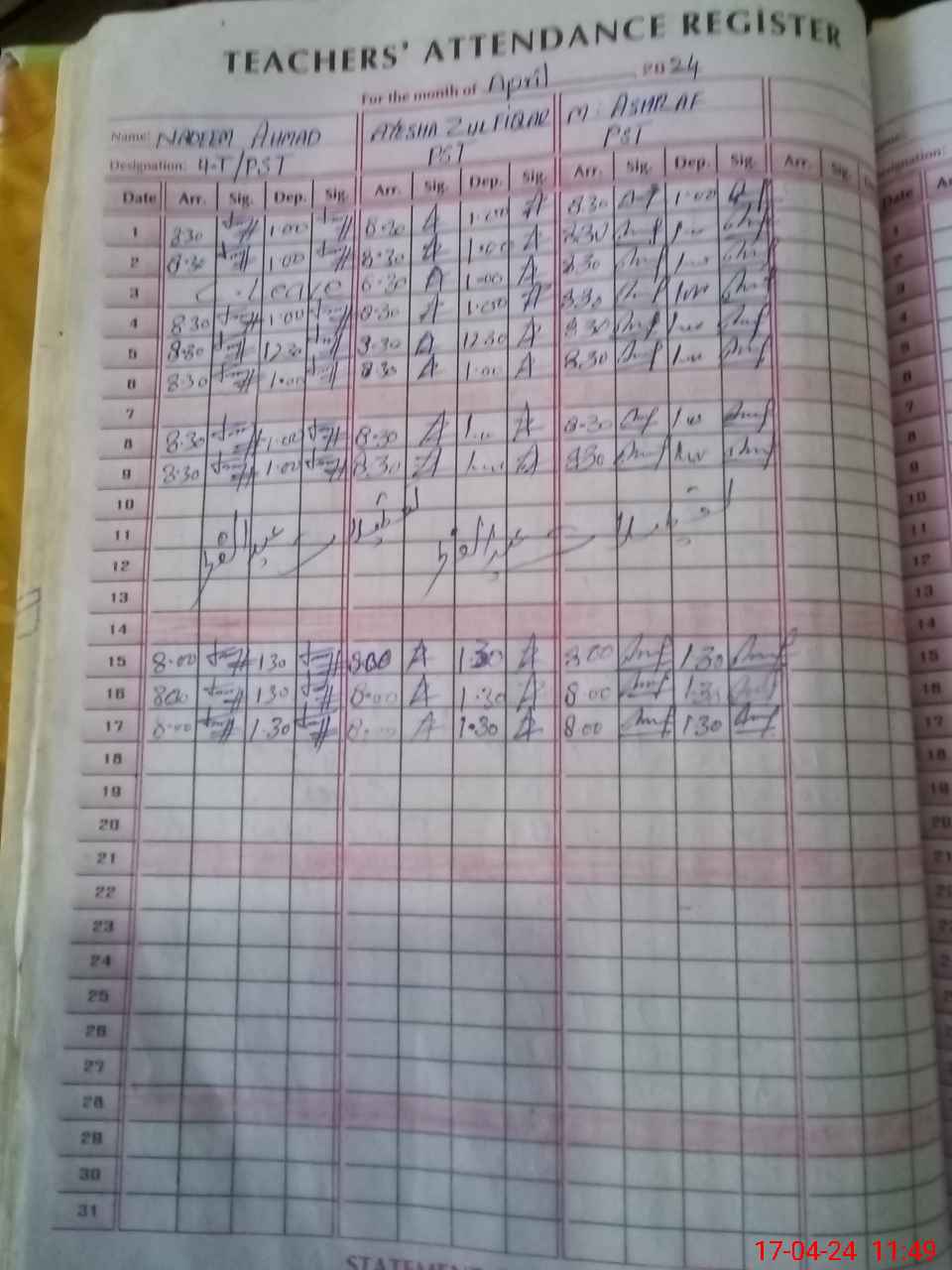 | Name: Mu**** As**** Designation: (School Headmaster's/Headmistress's) PST Phone/Cell Number: 03**** |