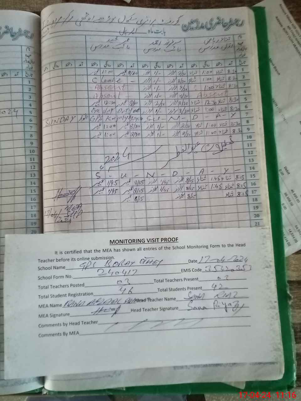 | EMIS Code: 35420353 | Name of School: GPS BHORAY OTHEY | |||