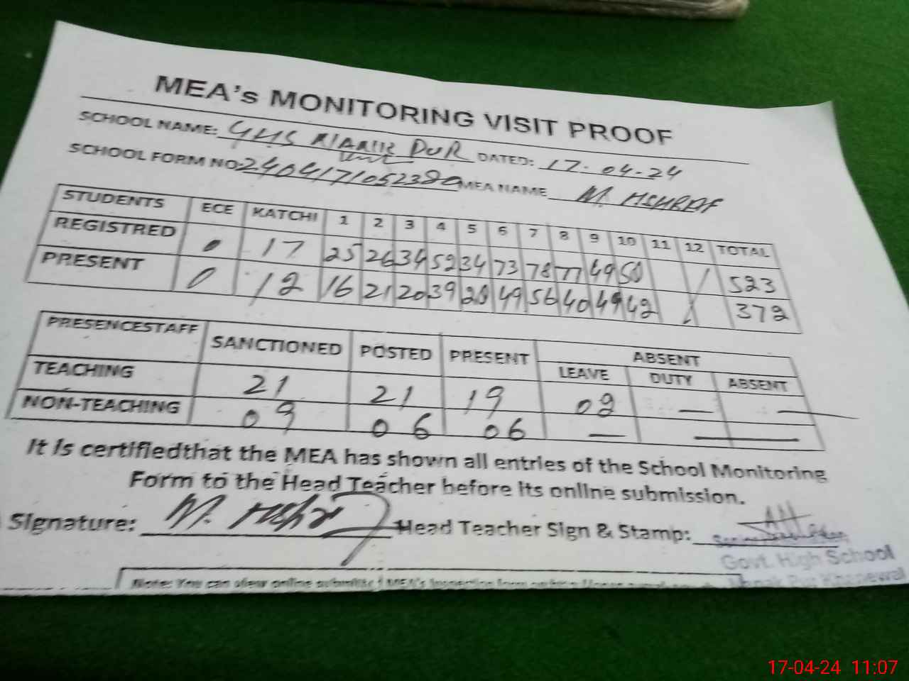 | EMIS Code: 36420007 | Name of School: GHS NANAK PUR, KHANEWAL | |||