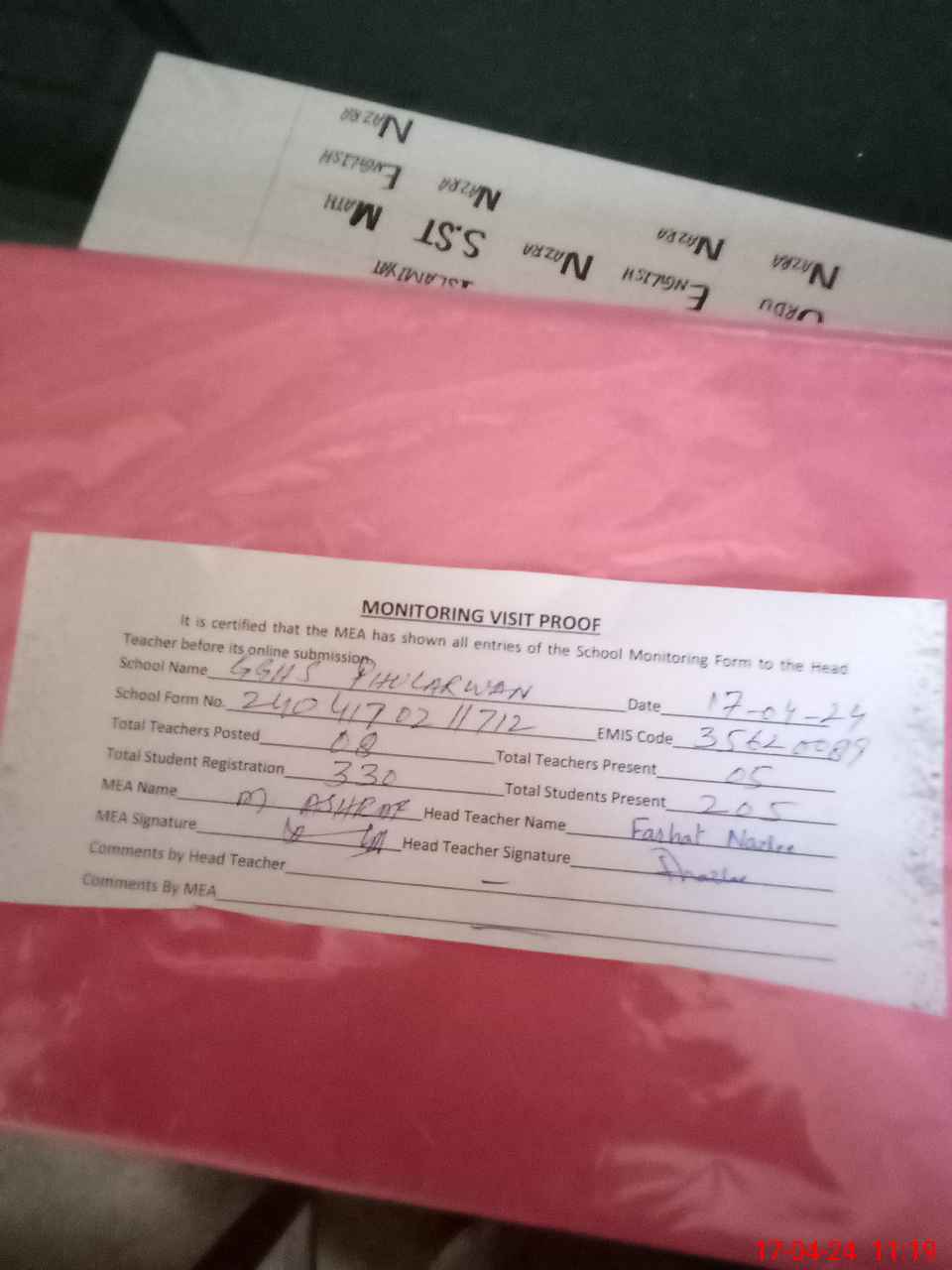 | EMIS Code: 35620089 | Name of School: GGHS PHULERWAN | |||