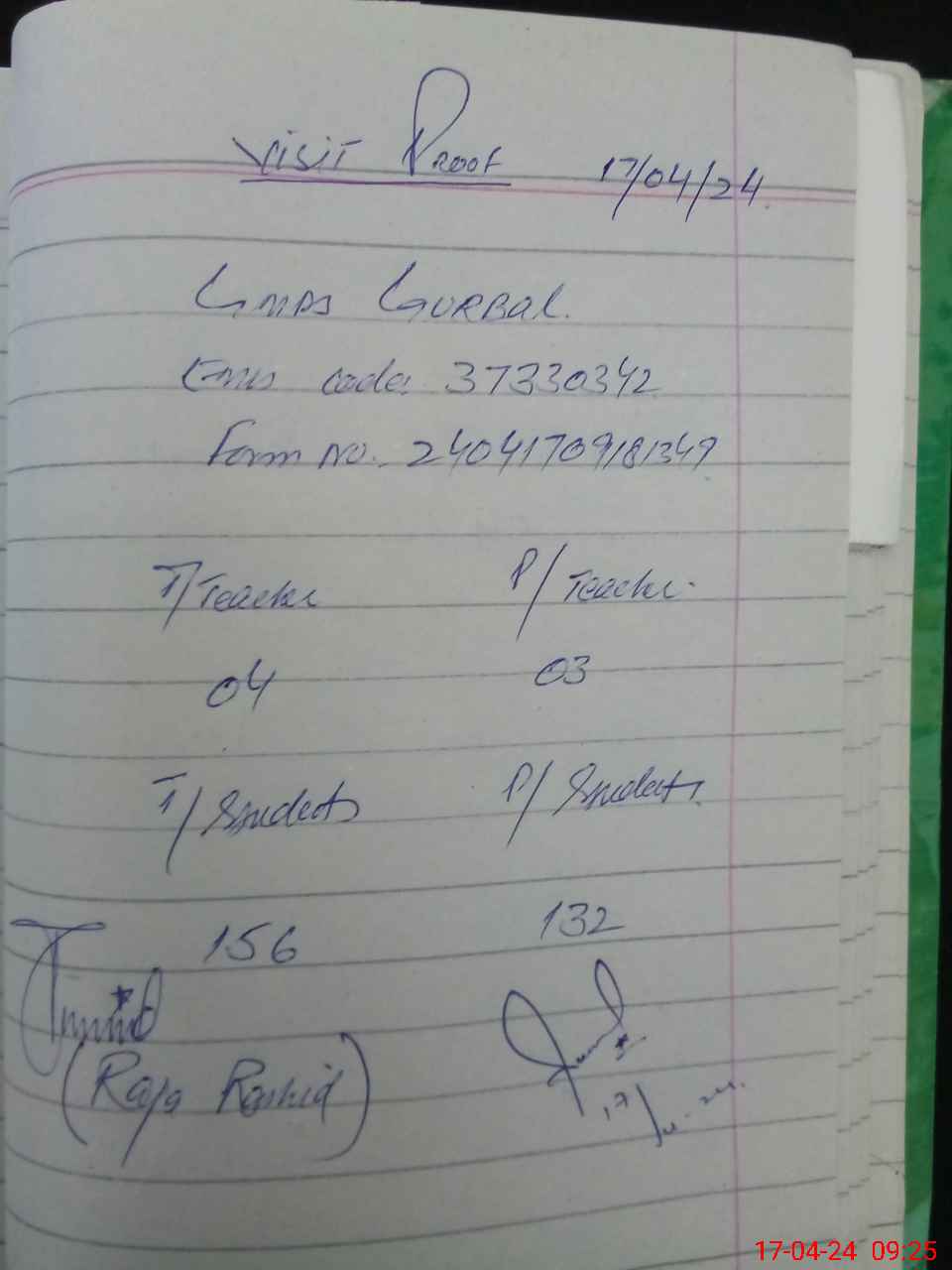 | Attendance Register | Head Teacher | MEA with School | Visit Proof |