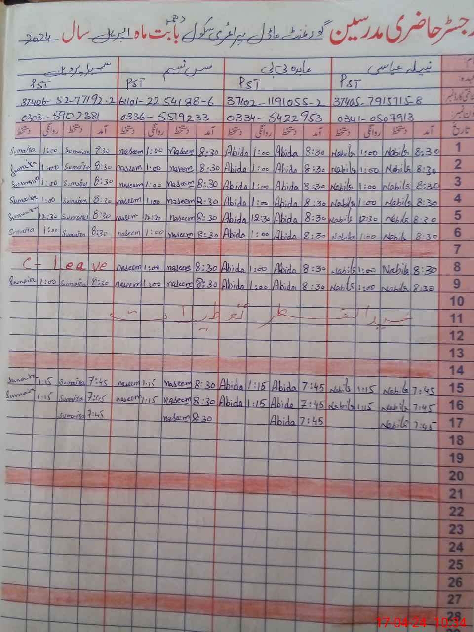 | CNIC | Full Name | Designation | R/C | Absence During Last Calender Month |