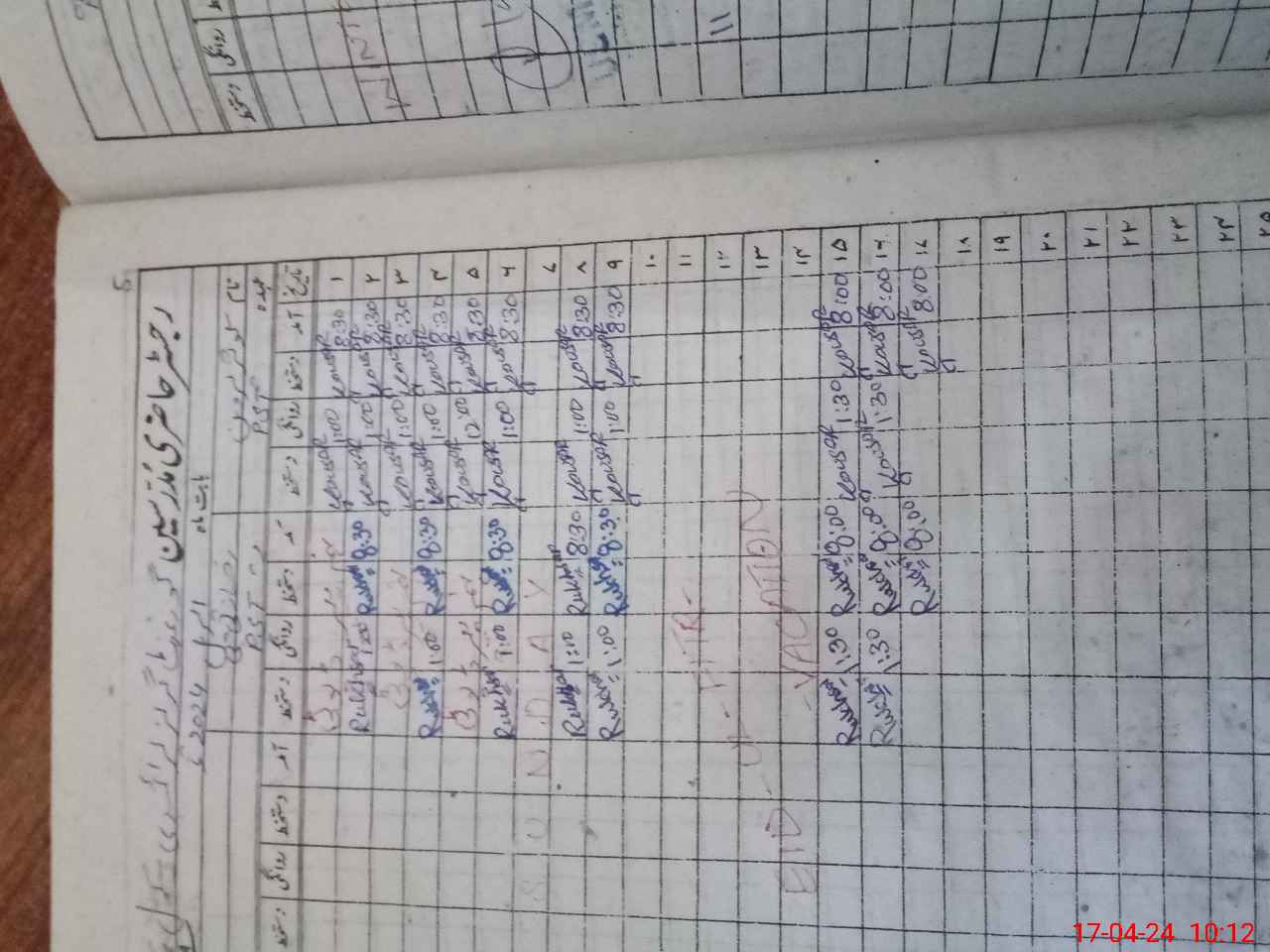 | CNIC | Full Name | Designation | R/C | Absence During Last Calender Month |