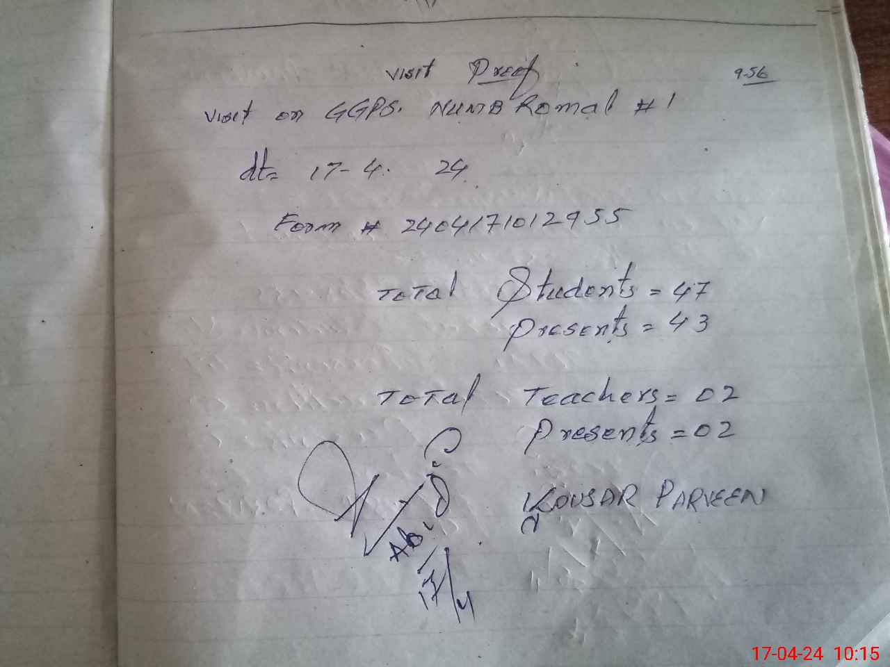 | Attendance Register | Head Teacher | MEA with School | Visit Proof |