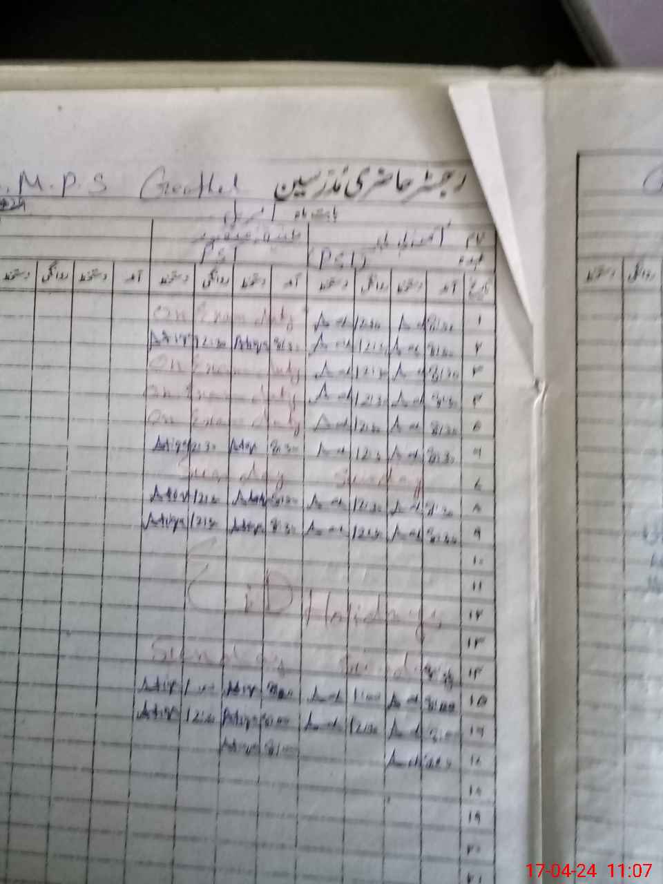 | CNIC | Full Name | Designation | R/C | Absence During Last Calender Month |