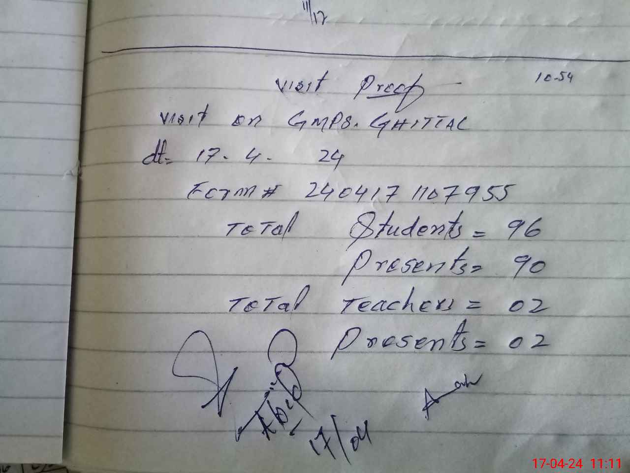 | Attendance Register | Head Teacher | MEA with School | Visit Proof |