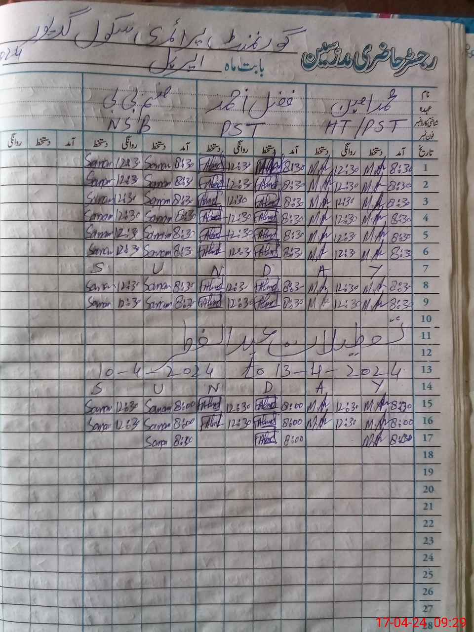 | Name: AL**** HU**** Designation: (School Headmaster's/Headmistress's) PST/PTC/JV Phone/Cell Number: 03**** |