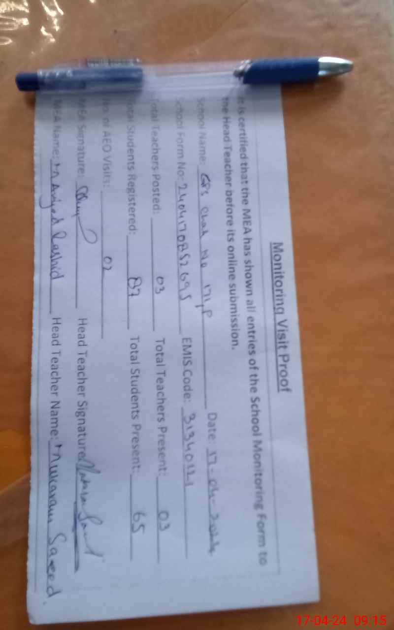 | Certified that this School was Inspected by the Undersigned MEA/DMO Today and the Information Stated Above is as Per Record. | |||||