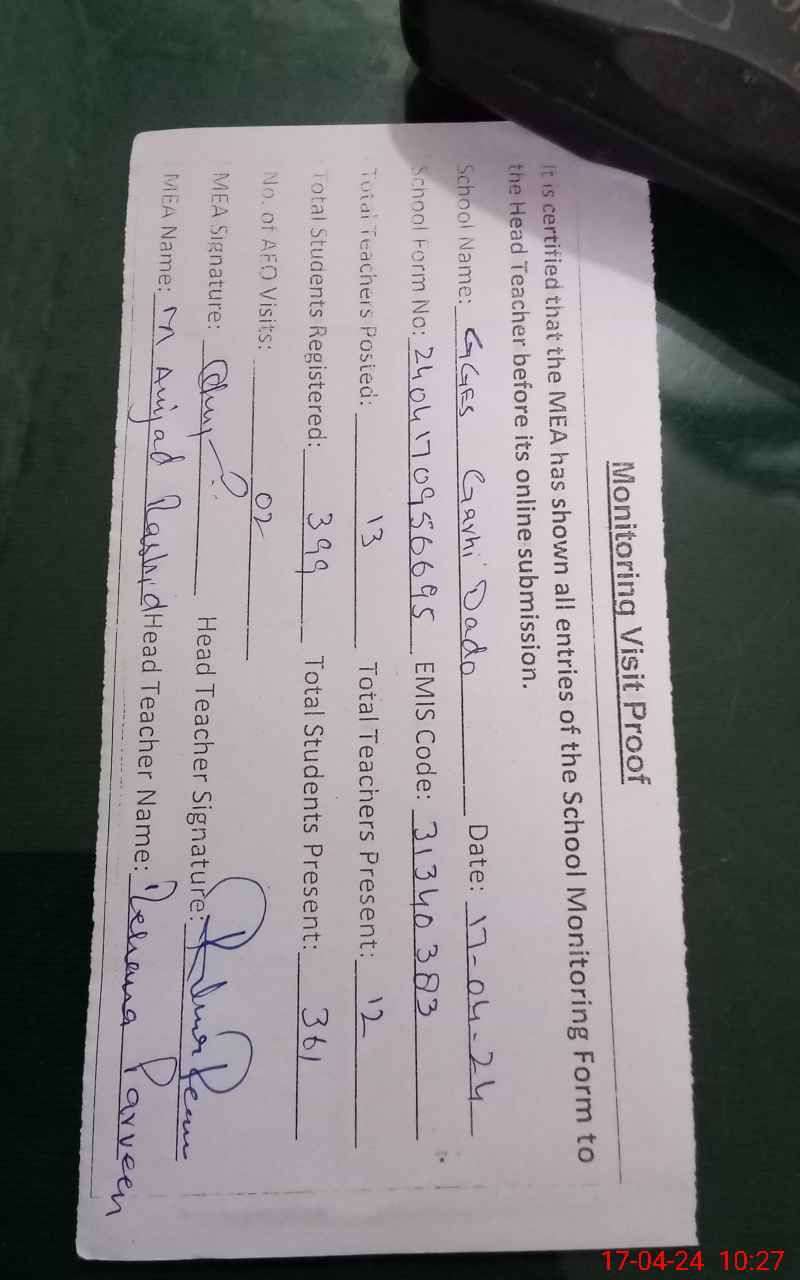 | EMIS Code: 31340383 | Name of School: GGES GHARI DADO | |||