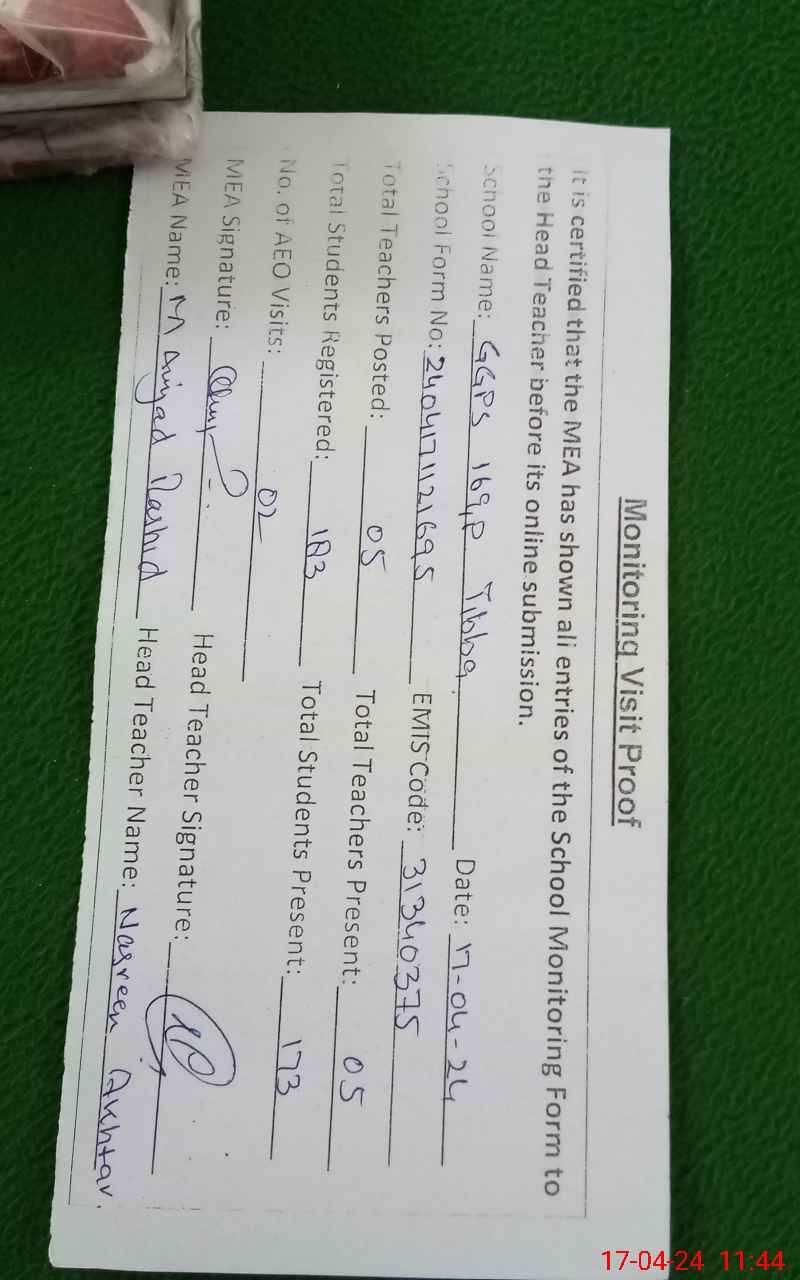 | EMIS Code: 31340375 | Name of School: GGPS 169/P TIBBA | |||