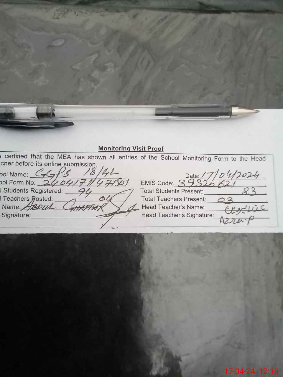 | EMIS Code: 39320621 | Name of School: GGPS 18/4-L | |||