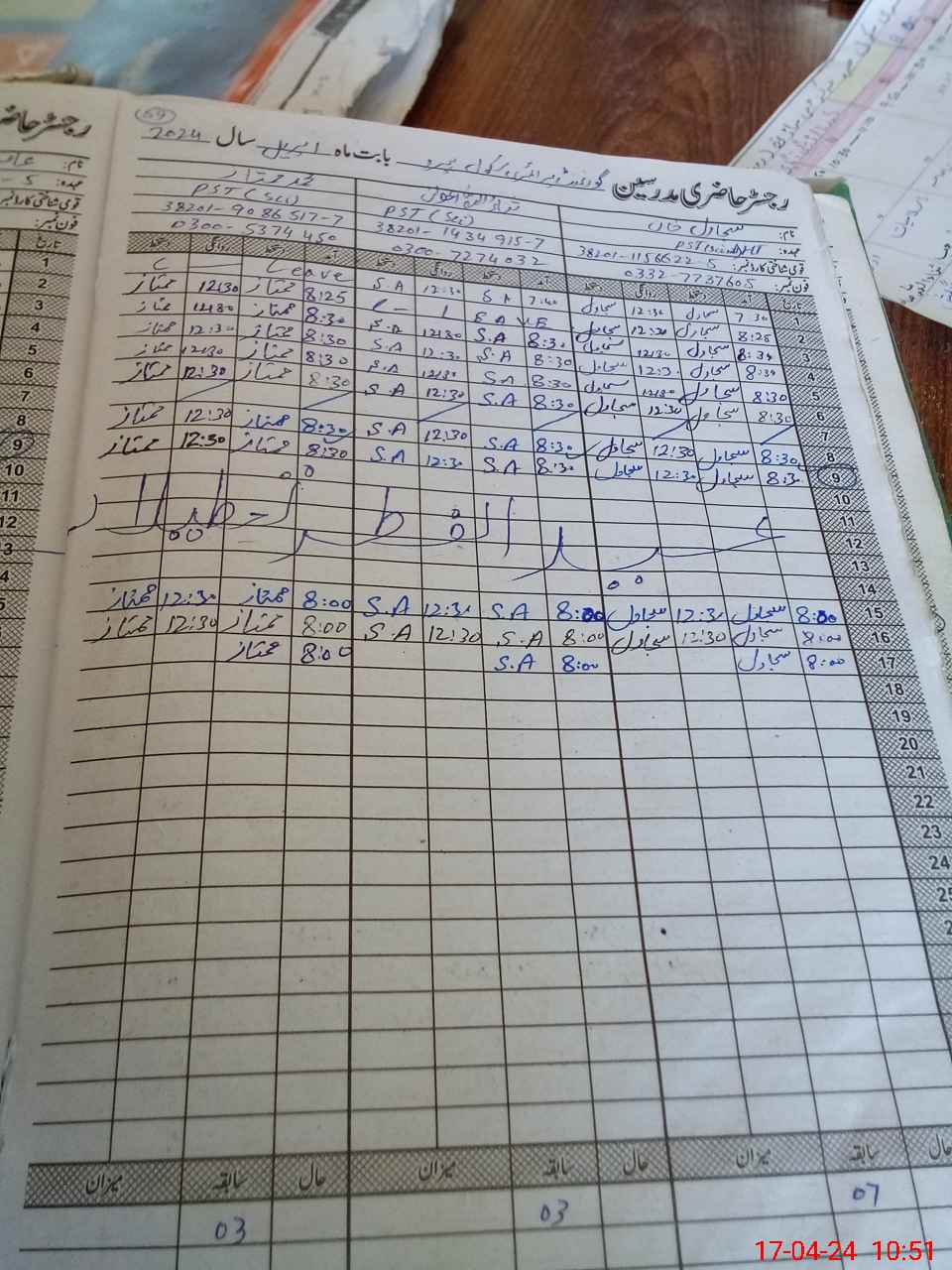 | Name: SA**** Kh**** Designation: (School Headmaster's/Headmistress's) Pst Phone/Cell Number: 03**** |