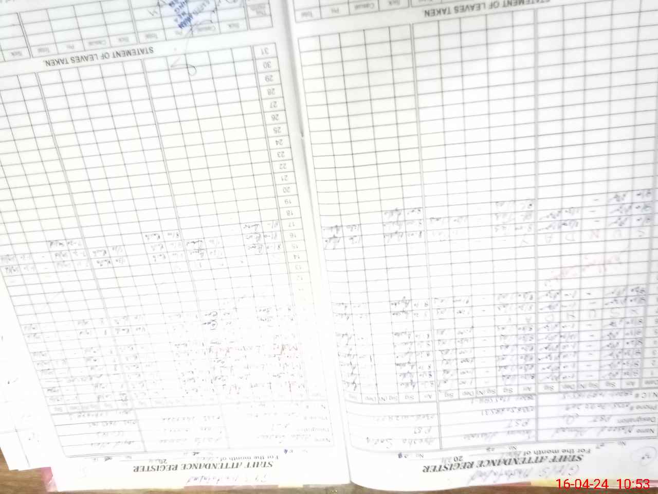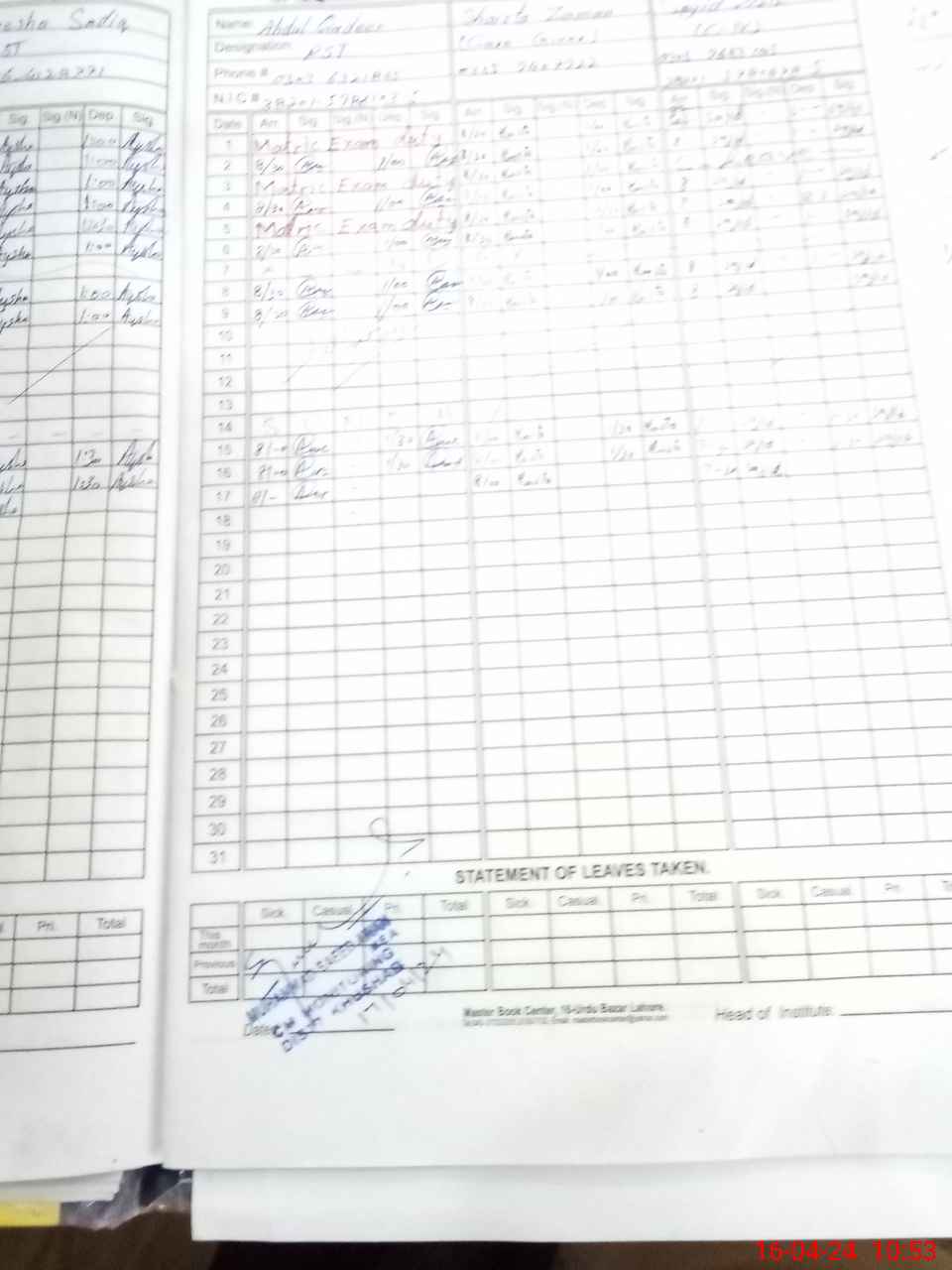 | CNIC | Full Name | Designation | R/C | Absence During Last Calender Month |