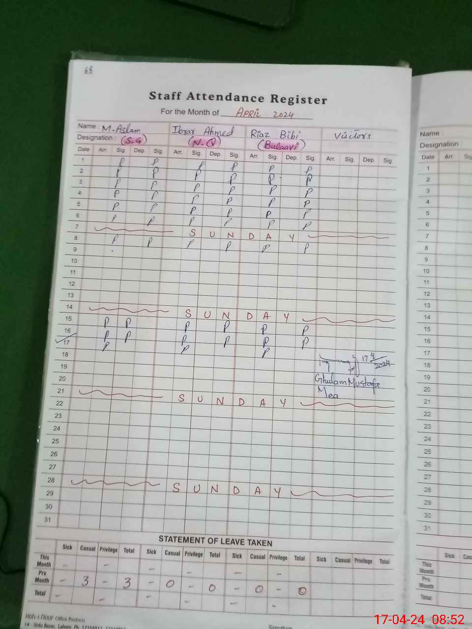 | 35**** | Iq**** Zu**** | PST | Regular | 3 | 0 | 0 | 0 | 0 | 0 | 0 | 0 | 3 | Casual |