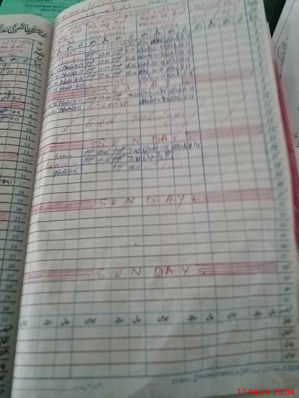 | Leave | Duty | Absent | Maternity | Medical | Ex- Pak |