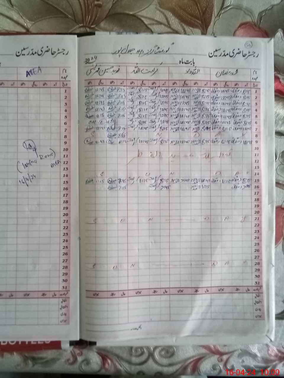 | CNIC | Full Name | Designation | R/C | Absence During Last Calender Month |
