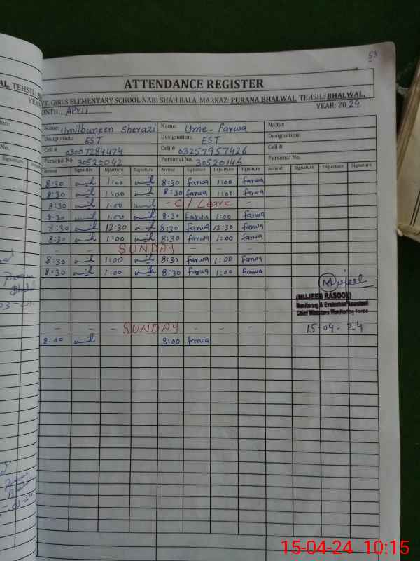 | District: SARGODHA | Tehsil: BHALWAL | Markaz: PURANA BHALWAL - FEMALE | Level: Middle | |