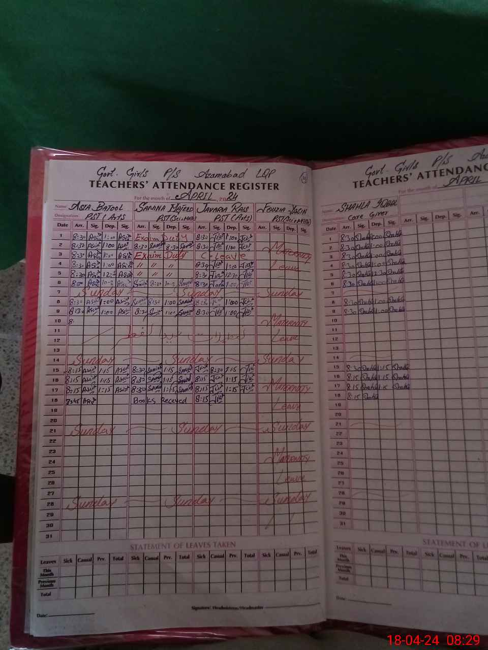 | 31**** | Fo**** Ya**** | PST | Regular | 0 | 0 | 0 | 0 | 0 | 0 | 0 | 0 | 0 | Maternity |