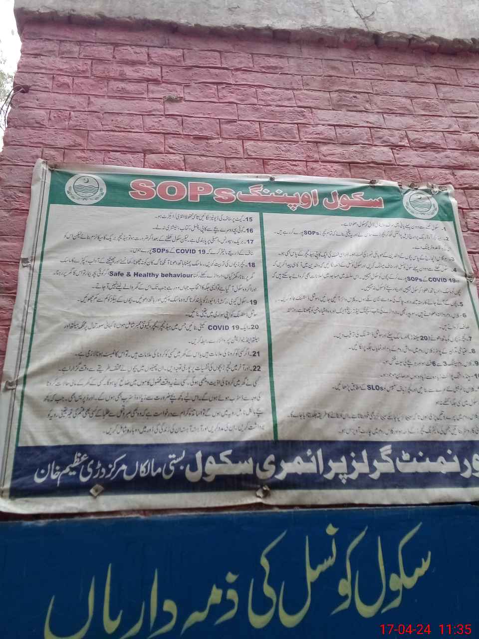 | District: RAHIMYAR KHAN | Tehsil: RAHIMYAR KHAN | Markaz: DARI AZEEM KHAN-FEMALE | Level: Primary | |