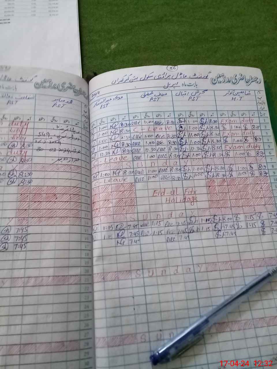 | Leave | Duty | Absent | Maternity | Medical | Ex- Pak |