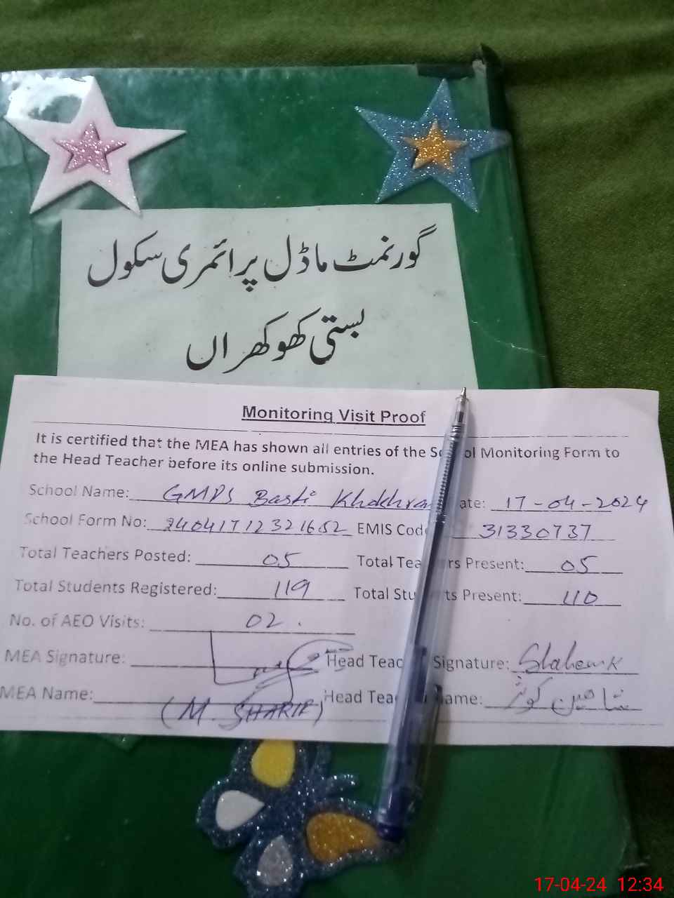 | Attendance Register | Head Teacher | MEA with School | Visit Proof |
