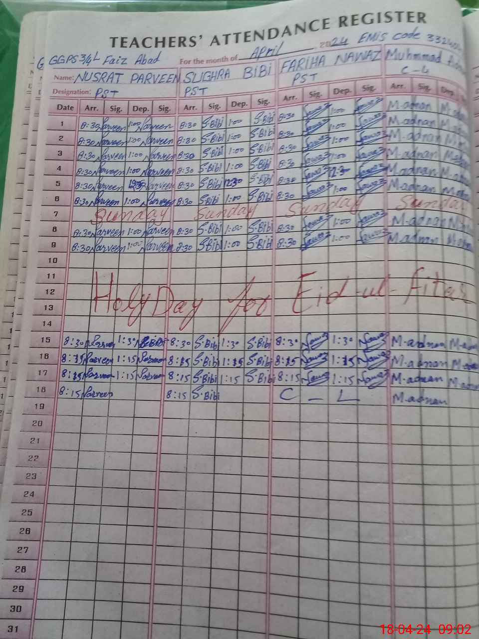 | 33**** | Fa**** Na**** | PST | Regular | 0 | 0 | 0 | 0 | 0 | 0 | 0 | 0 | 0 | Casual |