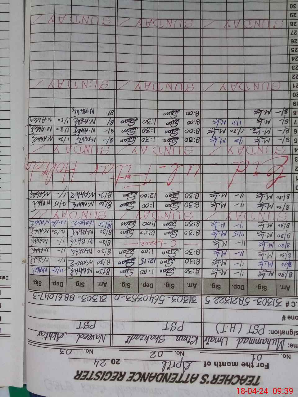 | Name: Mu**** UM**** Designation: (School Headmaster's/Headmistress's) PST/PTC/JV Phone/Cell Number: 03**** |