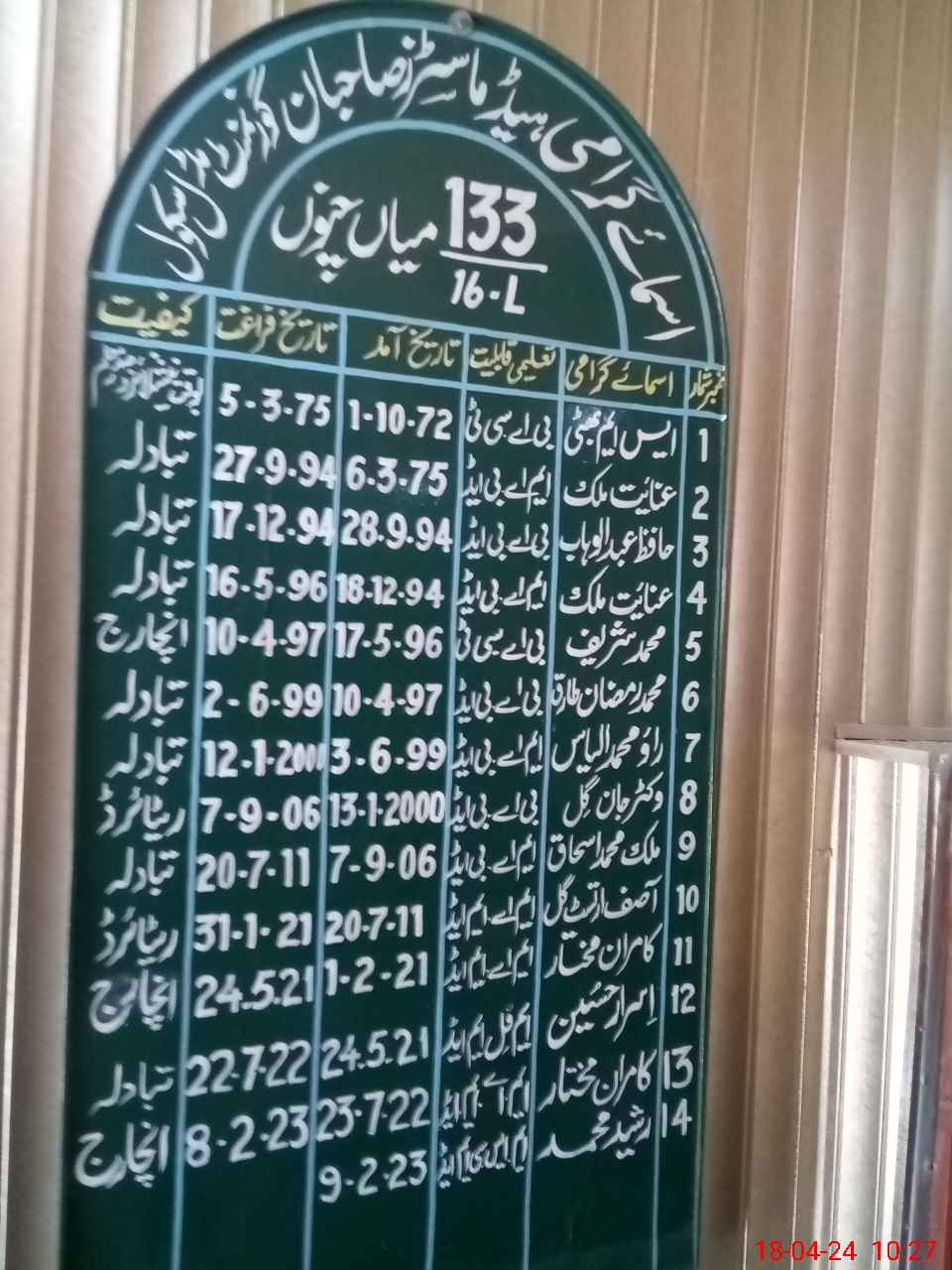 | EMIS Code: 36430049 | Name of School: GES 133/16-L, MIAN CHANNU | |||