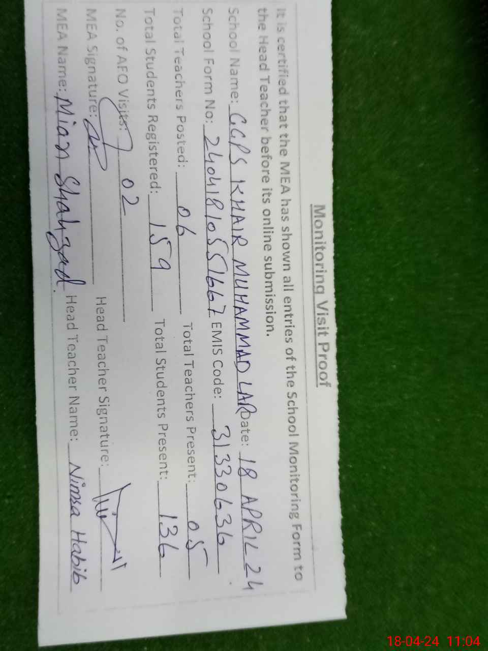| EMIS Code: 31330636 | Name of School: GGPS KHAIR MUHAMMAD LAR | |||