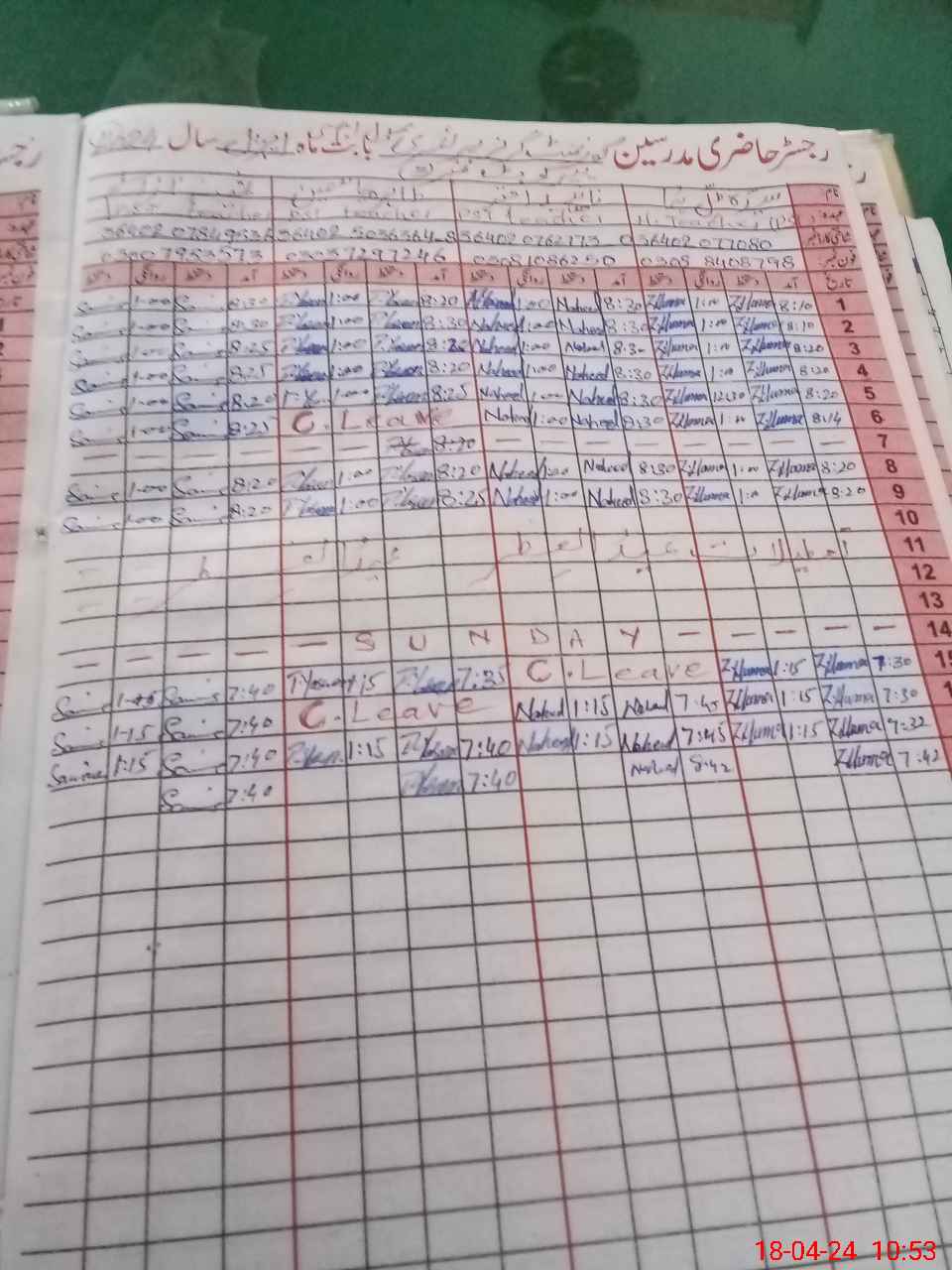 | CNIC | Full Name | Designation | R/C | Absence During Last Calender Month |