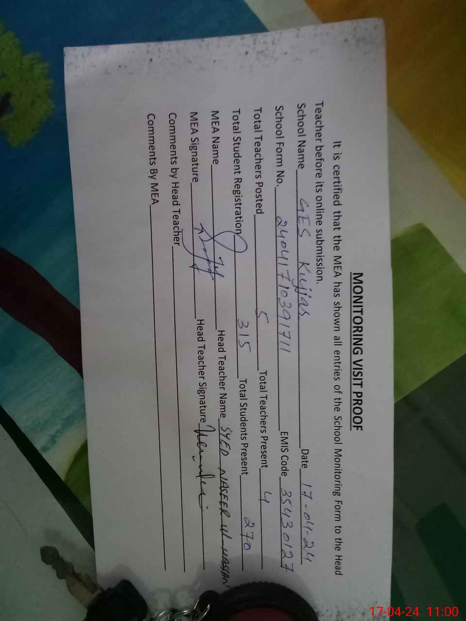 | EMIS Code: 35430127 | Name of School: GES KHUJJAR | |||